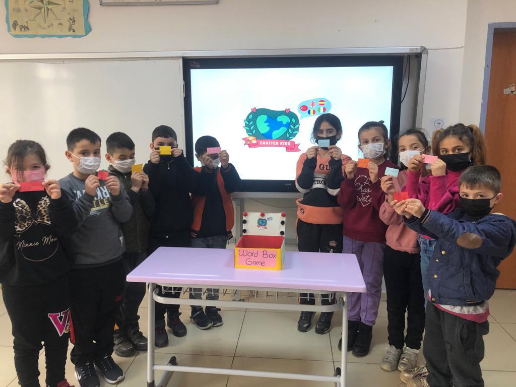 "Chatter Kids" (Geveze Çocuklar) projesi, Şubat ayı etkinlikleri kapsamında 4. Sınıf öğrencileri İngilizce kelime kutusu oyunu oynadılar. İngilizce öğretmeni Burcu Kardaş, kelime kutusuna İngilizce kelimeler yazılı kağıtlar koydu ve öğrenciler de sırayla kelime seçip anlamını arkadaşlarına söylediler. Öğrenciler hem kelimelerin İngilizce telaffuzuna dikkat ettiler hem de anlamını tartıştılar. Çocuklar için çok eğlenceli bir etkinlikti.